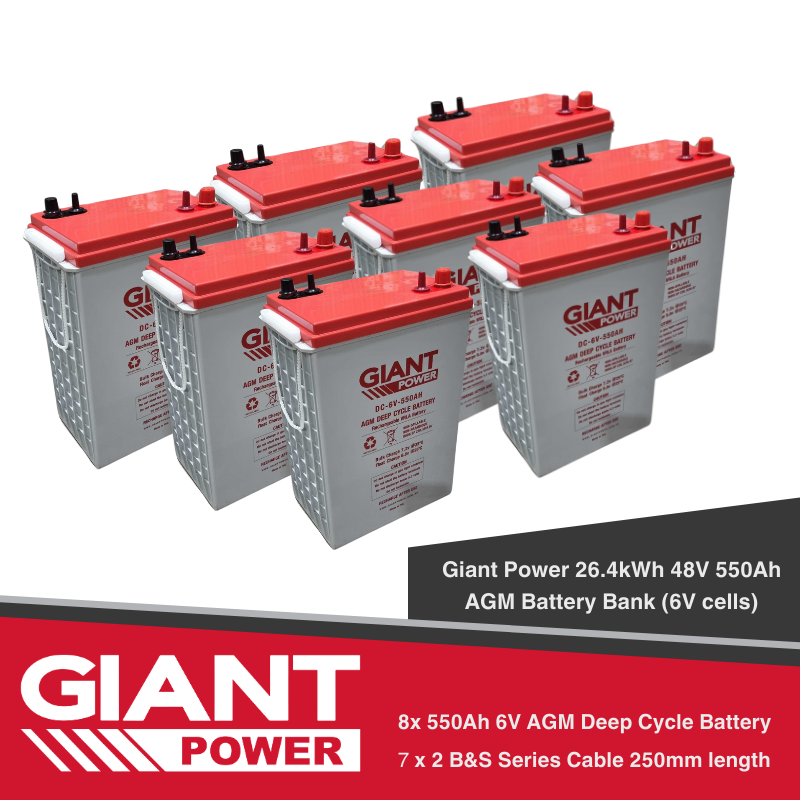 Giant Power 26.4kWh 48V 550AH AGM Battery Bank (6V cells)